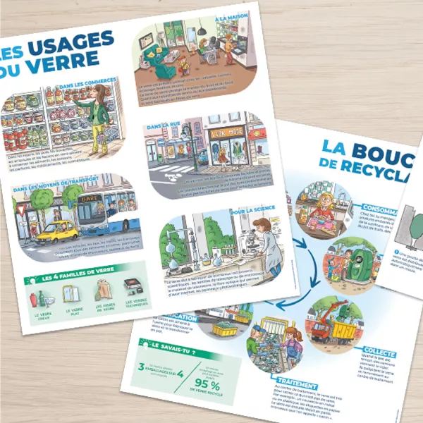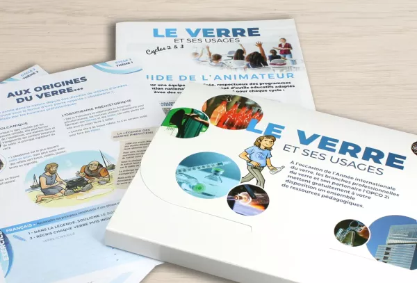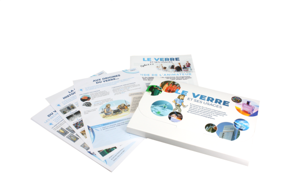 Pour faire découvrir le verre, vous est proposé deux kits pédagogiques. L'un explore l'origine, la fabrication, les usages du verre. L'autre traite plus spécifiquement des enjeux environnementaux et des processus de recyclage. Ces outils sont conçus pour enrichir les connaissances des élèves de manière pratique et ludique.